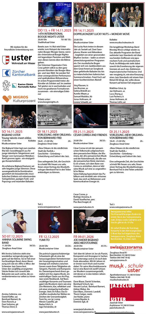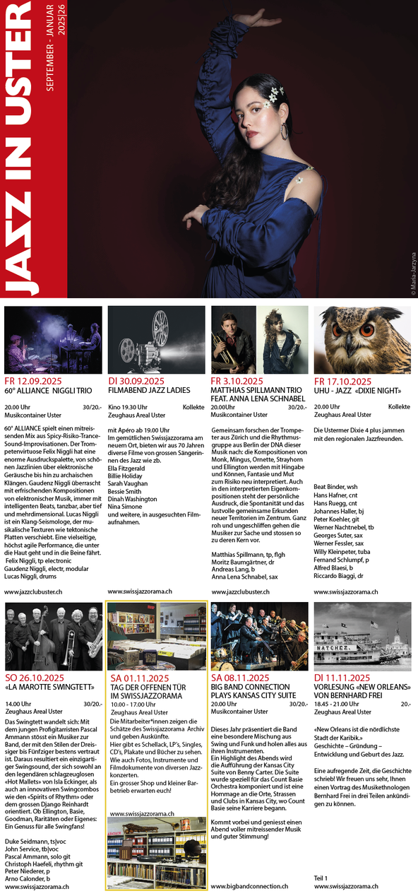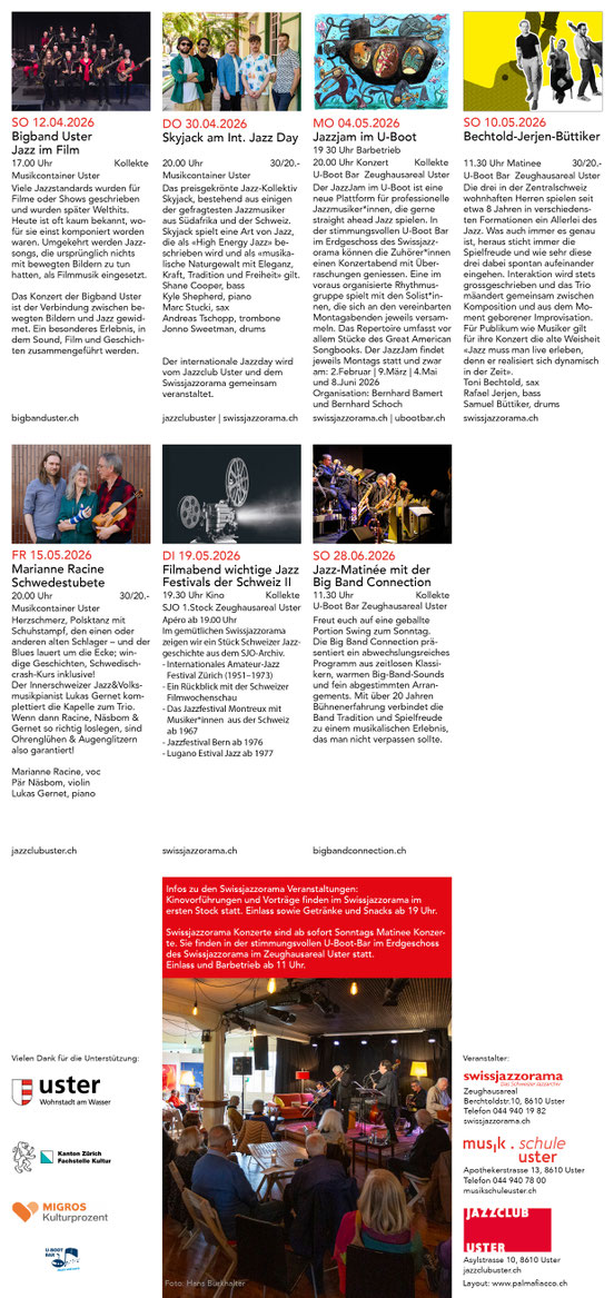 Wenn Du eine gedruckte Version des Jazzclub Uster Programm möchtest